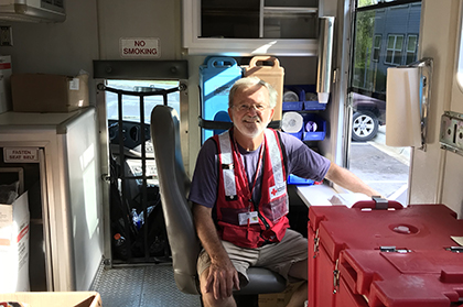 John Crepeau and Sal Duran have been volunteering together for the Red Cross for several years. One of their roles is to be on-call as part of a Disaster Action Team, or DAT. On the night of June 16, 2020, John and Sal received the call to respond to an apartment on Nash Road in Hollister, to help a family displaced by a fire.