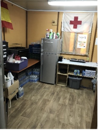 On occasion, while on a casework delivery call or attending a Team 44 virtual meeting, Lisa Ann had to cut and run to the nearest bunker for incoming rockets or security drills. Generally, alone and without water in hand, time in a bunker varied widely for Lisa Ann – from 40 minutes for a security drill to over 4 hours for a rocket or drone. Staying inside the Red Cross trailer or sleeping quarters was not an option.
