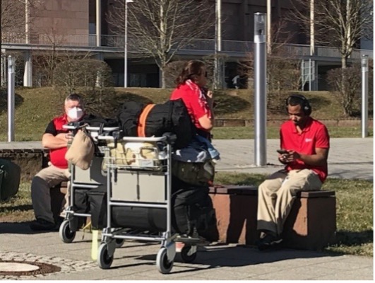 The COVID-19 pandemic presented a year of shut-downs. Team 44 endured an extended 7-month rotation with the additional requirements of COVID-19 tests and 14-day quarantines for every country Team 44 landed in. During their stay in each country, the team underwent extensive military-required courses in cultural studies and military protocols, in addition to Red Cross programs and additional HCC casework trainings. The mandatory country quarantines extended Team 44’s door-to-door deployment to eight months.