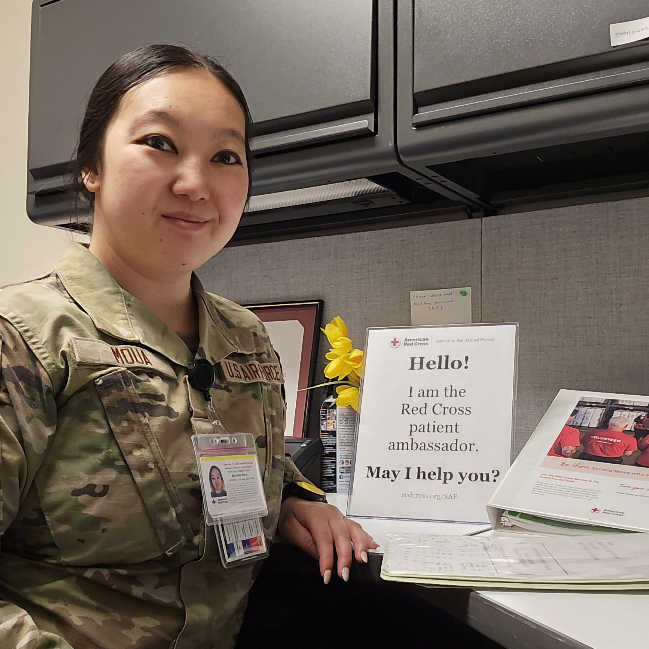Michelle Moua is one such volunteer. Her regular job on the base is as an Aviation Resource Management specialist. Because she believes “altruism is a different sensation of happiness,” she volunteers with the Red Cross. Her role is to assess the qualifications of other volunteers at the DGMC and ensure they have the right qualifications and paperwork completed.