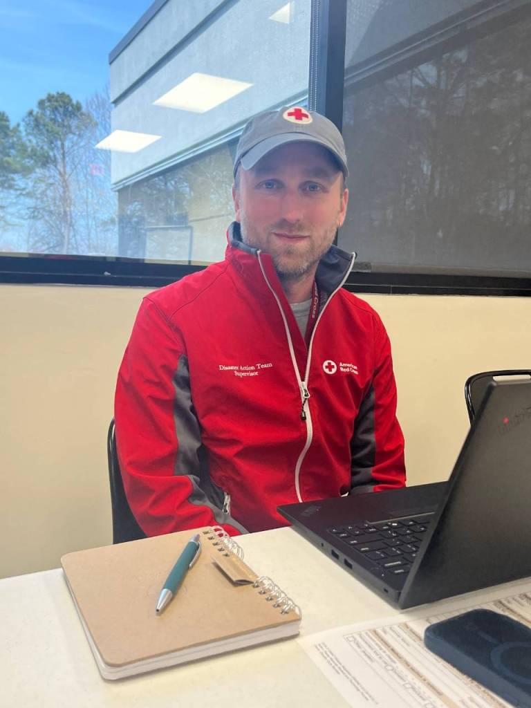 Andrew says this is his first deployment with the Red Cross, and he has only worked with the organization for a couple of months.