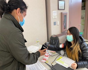 The Blood Donor Ambassador at the front desk asks for your donor card and identification (such as a driver’s license). They scan the QR code on your phone if you have a RapidPass. The Ambassador also gives you some material to read about donating blood.