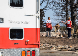 Another aspect of Sharon’s work as a disaster mental health volunteer is being present and offering support to her colleagues who are also deployed. “For example, if we notice a case worker, or another volunteer who is showing signs of needing a break, we approach them and ask if they’d like to take a brief walk, have a bottle of water, or in some other way give them a bit of respite,” she said. She also makes check-in calls, offering counseling and support when fellow Red Crossers come back home after a deployment.