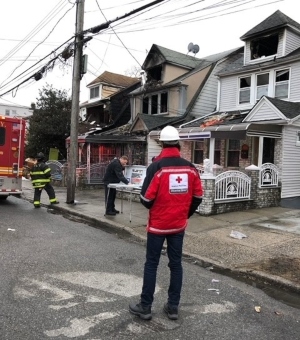 Cameron at the site of one of his first Disaster Action Team responses in New York City, responding to a multi-family fire in Brooklyn.